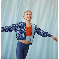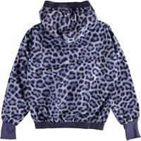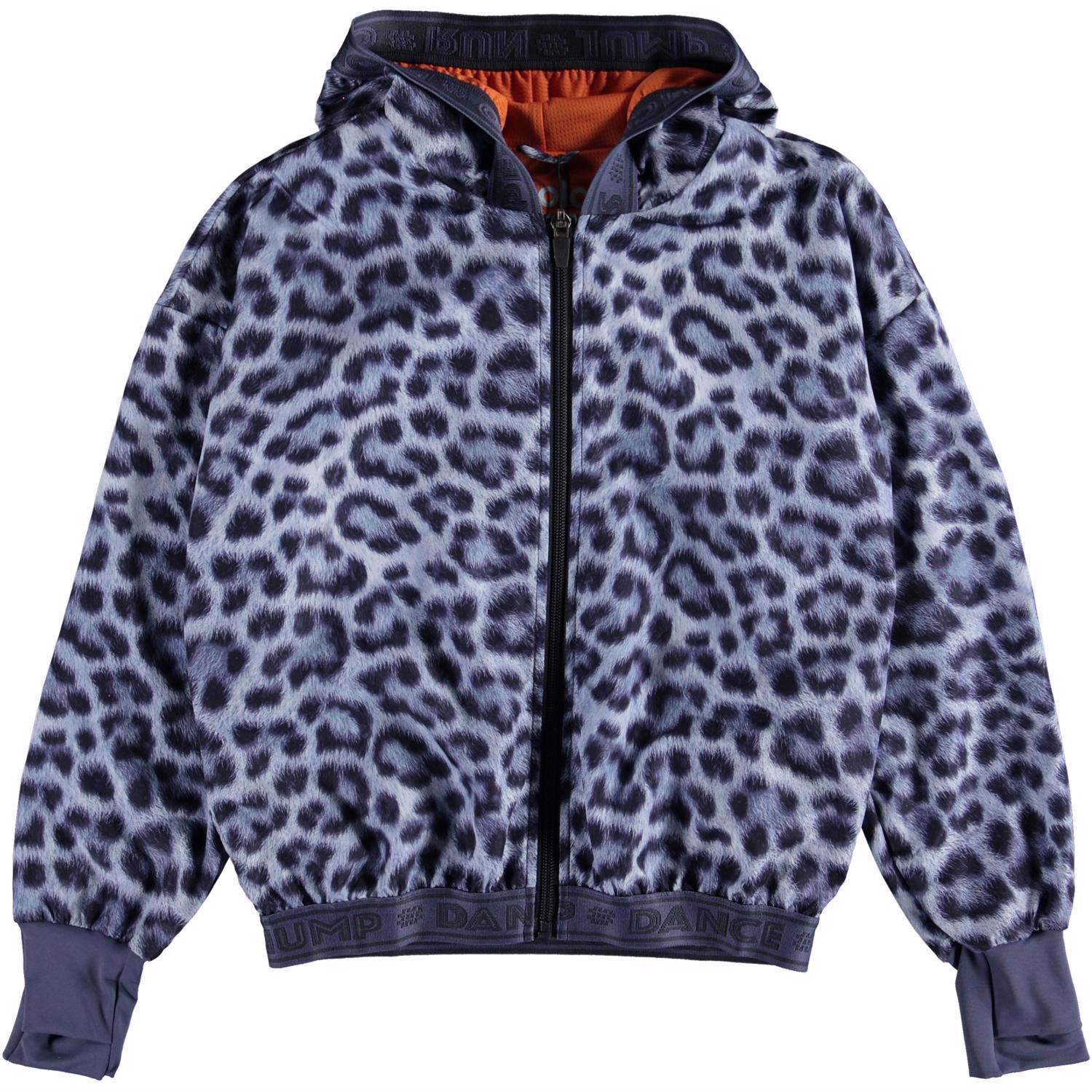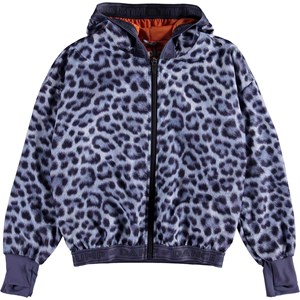 Ophelia er en luftig sportsjakke i mørkeblå med leopardprint. Jakken har lynlås lukning og hætte, samt blåt kantebånd med tekst. Jakken er en del af Molo's sportskollektion, som er med til at binde mode og sport tættere sammen. Kombiner Ophelia med en af de matchende styles fra Molo's sportskollektion for et komplet og cool look. Molo’s sportskollektion er fremstillet med en unik high-performance teknologi kaldet HeiQ Smart Temp, der understøtter kroppens naturlige nedkøling. Kølefunktionen aktiveres, når duer varm og svedig. Kølefunktionen deaktiveres, når kroppen er nedkølet. HeiQ Smart Temp sikrer optimal komfort og ydeevne. Testet uafhængigt som sikkert for huden.