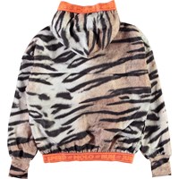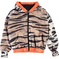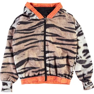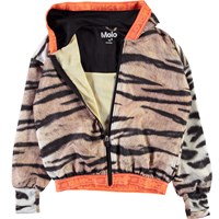 Ophelia er en luftig sportsjakke med cool tiger print. Jakken har lynlås lukning og hætte, samt orange kantebånd med tekst. Jakken er en del af Molo's sportskollektion, som er med til at binde mode og sport tættere sammen. Kombiner Ophelia med en af de matchende styles fra Molo's sportskollektion for et komplet og cool look. Molo’s sportskollektion er fremstillet med en unik high-performance teknologi kaldet HeiQ Smart Temp, der understøtter kroppens naturlige nedkøling. Kølefunktionen aktiveres, når duer varm og svedig. Kølefunktionen deaktiveres, når kroppen er nedkølet. HeiQ Smart Temp sikrer optimal komfort og ydeevne. Testet uafhængigt som sikkert for huden.