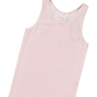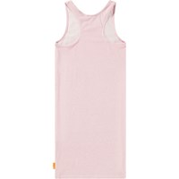 Strækbar og knælang lyserød tanktopkjole med struktur. Kjolen er tætsiddende med brede stropper og rund hals. Materialet tørrer hurtigt og er ideelt til poolen eller stranden.