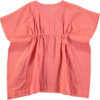 Yndig, oversize tunika i en flot ferskenfarve med sød snøredetalje i livet og fine kvaster. Tunikaen kan både bruges som kjole eller til at tage over badetøjet til og fra stranden.