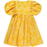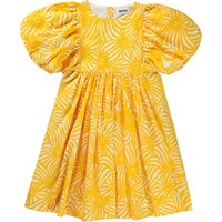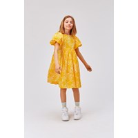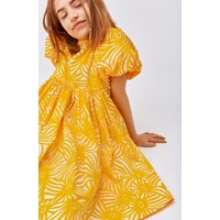Calyita er en kjole i gul og hvid kjole i allover solstråle print. Printet dannes af en masse glade sole, hvis mange stråler forbinder hinanden. Kjolen har et loose fin med fine pufærmer og et fyldigt skørt, og er fremstillet i økologisk bomuld. Kjolen har knaplukning midtbag.