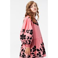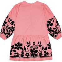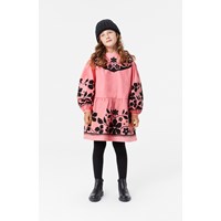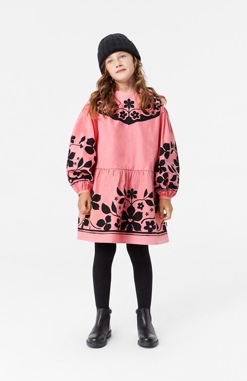 Bordeaux fløjlkjole i økologisk bomuld, knælang og oversize med masser af rynk ved ærmer og skørt. De lange ærmer har elastik ved håndleddet, der tilføjer en puffeffekt. Kjolen er let at komme i med den usynlige lynlås placeret på ryggen.