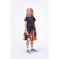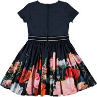 Candy er en poplin kjole med stretch i, som gør den utrolig behagelig at have på. Candy er i mærkeblå med print af flotte blomster. Kjolen har lynlåslukning i nakken og stribet taljebånd. Certificeret af Ecocert Greenlife, certifikationsnr. 197496.