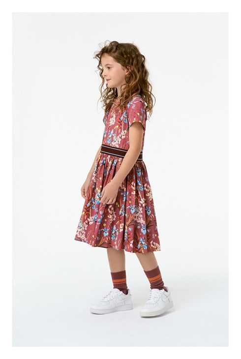 Candy er en lyserød kjole med flot blomster print. Kjolen er i poplin med stretch, som gør den ekstra behagelig at have på. Kjolen har lynlåslukning i nakken stribet elastisk talje.