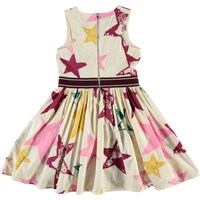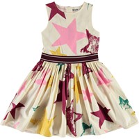 Carli er en poplin kjole med stretch i, som gør den utrolig behagelig at have på. Carli er uden ærmer og med print af farvede stjerner. Kjolen har lynlåslukning i nakken og boardeuaux taljebånd.