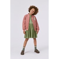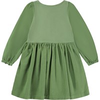 Grøn knælang kjole med ærmer og skørt i riflet fløjl. Denne kjole er fremstillet i 100% bomuld, en rund halsudskæring med ribkant, har lange ærmer med volume og elastik, et rynket skørt med masser af sving i, samt et regulært fit.