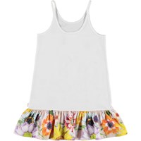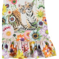 Carrie er en hvid stropkjole med print af blomster og tigre på fronten.