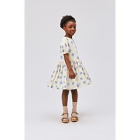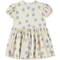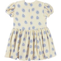 Cascadia er en råhvid kjole i blød bomulds musselin. Kjolen har korte pufærmer og en rynket talje, der skaber volumen i skørtet. Kjolen går til omkring knæet. På Cascadia er der printet små, spraymalede, lyseblå glade ansigter.