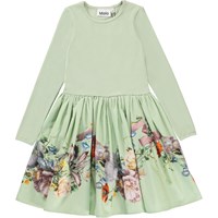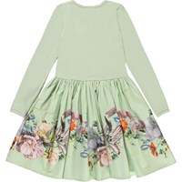 Casie er en mint grøn kjole med overdel i rib, lange ærmer, samt et feminint poplin skørt med print af flotte store blomster.