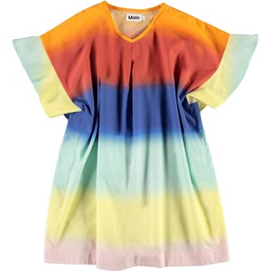 Smuk og farvestrålende tunika med flæseærmer og bløde brede regnbuestriber. Nem at iføre sig til en dag på stranden med badetøjet nedenunder. I 100% økologisk bomuld.