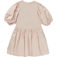 Cece er en sart lyserød kjole i økologisk bomuld. Kjolen har en dropped waist og pufærmer med elastik i kanten. Ærmer og skørt er af økologisk bomulds poplin ment overdelen er økologisk bomulds jersey.
