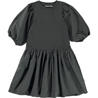 Cece er en mørkegrå kjole med flotte volumiøse ærmer og skørt.