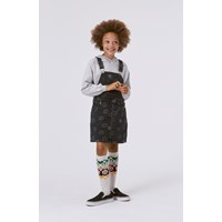 Mørkegrå knælang denim spencer kjole med allover smilende ansigter. De smilende ansigter på er vævet ind i stoffet, der giver det et eksklusivt look. Denne spencer kjole er fremstillet i 100% bomuld, har seler med mørkt metal hardware, en lomme på fronten, lommer i siden baglommer, samt et regulært fit. Match evt. denne kjole me jakken, Hiro, i samme print, for det perfekte sæt.