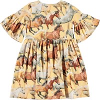 Chasity er en lysegul kjole med print af heste. Kjolen har volumiøse ærmer, som giver en flot silhuet til kjolen.