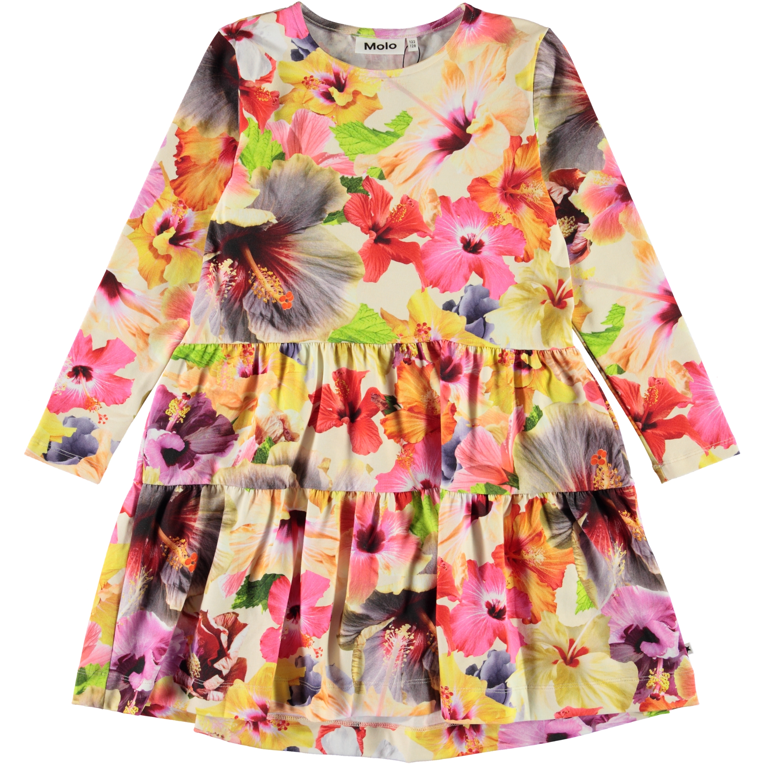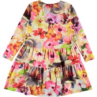 Blomsterne springer ud i flotte farver her i printet 'Pacific Floral' på kjolen Chia. Kjolen har lange ærmer og en løs samt behagelig pasform.