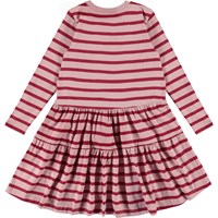 Chia er en lyserød kjole med røde striber. Kjolen har lange ærmer og en løs samt behagelig pasform.
