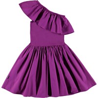 Chloey er en lilla drøm af en kjole. Kjolen er asymetrisk med flæsekant over det ene skulder. Overdelen af kjolen er i rib, mens skørtet er økologisk bomuld poplin, som har en flot volumen.