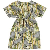 Christa er en kjole i printet 'Flying Leopard'. Kjolen har korte ærmer og rynker sammen ved brystet, som gør at kjolen får en fin facon.