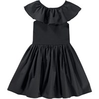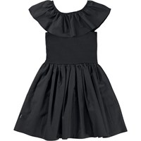 Christal er en sort knælang kjole i økologisk bomuld. Kjolen har et rundt skørt og krave af poplin, ens toppen er af rib jersey. Kraven kan styles sådan at den både kan sidde ovenpå skulderen, men også udover skulderen.