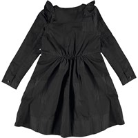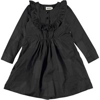 Christy er en sort taft kjole med tone i tone tern. Kjolen har lange ærmer, samt flæsekrave med fine sorte knapper ved kraven.