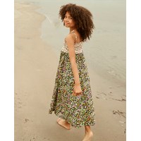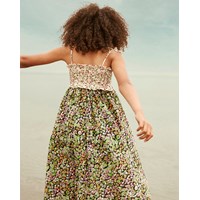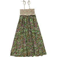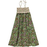Chrystal er en lang stropkjole med fint småblomstret print. Kjolen har smock for oven og skulder stropperne kan bindes.