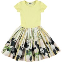 Pandabjørnen er det mest kræsne dyr, da de kun spiser bambus. Printet på kjolen Cissa viser pandaenbjørnen og dens store kærlighed til bambus. Kjolen har en lysegul ribbet overdel med korte ærmer og et feminint poplin skørt med panda og bambus print.