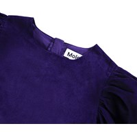 Elegant lilla kjole i blød velour. Kjolen er knælang og oversize med masser af rynk ved ærmer samt ved skørtet. De lange ærmer har elastik ved håndleddet, der tilføjer ærmet fylde. Kjolen er let at komme i med den usynlige lynlås placeret på ryggen.