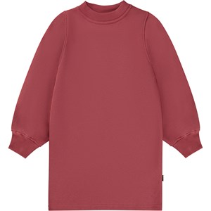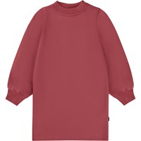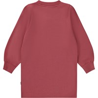 Rosa knælang sweatshirtkjole. Denne kjole har en rund halsudskæring, ribkant ved hals og ærmer, samt et regulært fit.