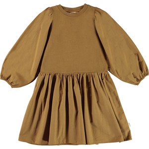 Cosette er en brun kjole med brede ærmer og luftigt skørt.