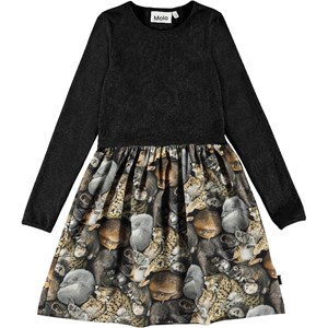 Credence er en kjole med grå overdel i rib med lange ærmer og et skørt med print forskellige dyr som sover.
