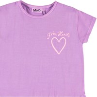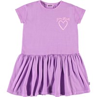 Cressida er en lilla kjole med korte ærmer. Kjolen har et oversized fit og print af hjerte på fronten.