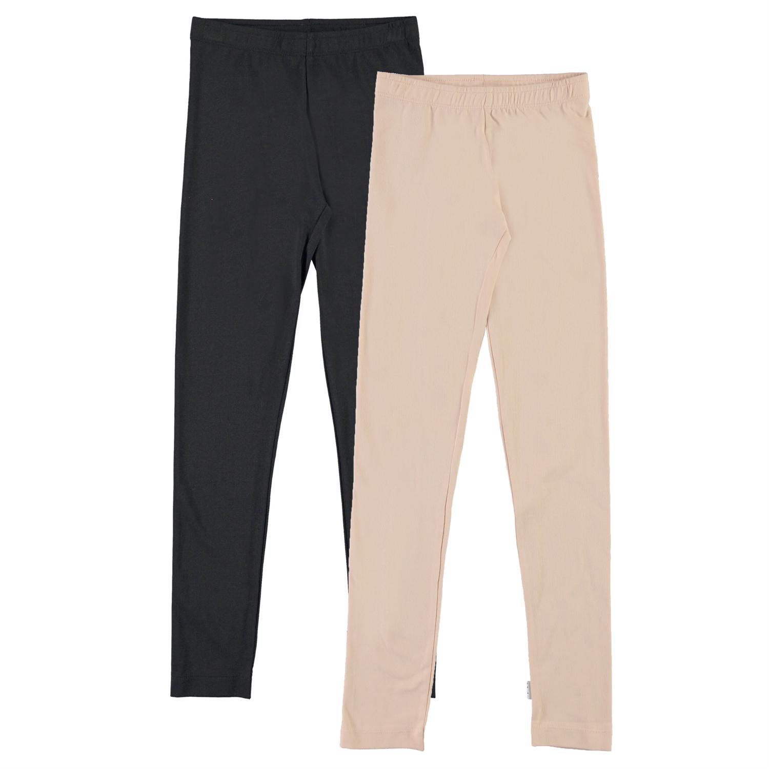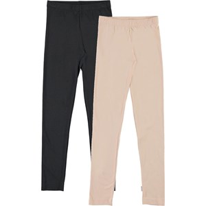 Molo's klassiske, lange leggings her i en 2-pack med et par rosa og et sorte leggings. De er fremstillet i stretchy bomuldsmix og den elastiske talje sikrer et godt fit.
