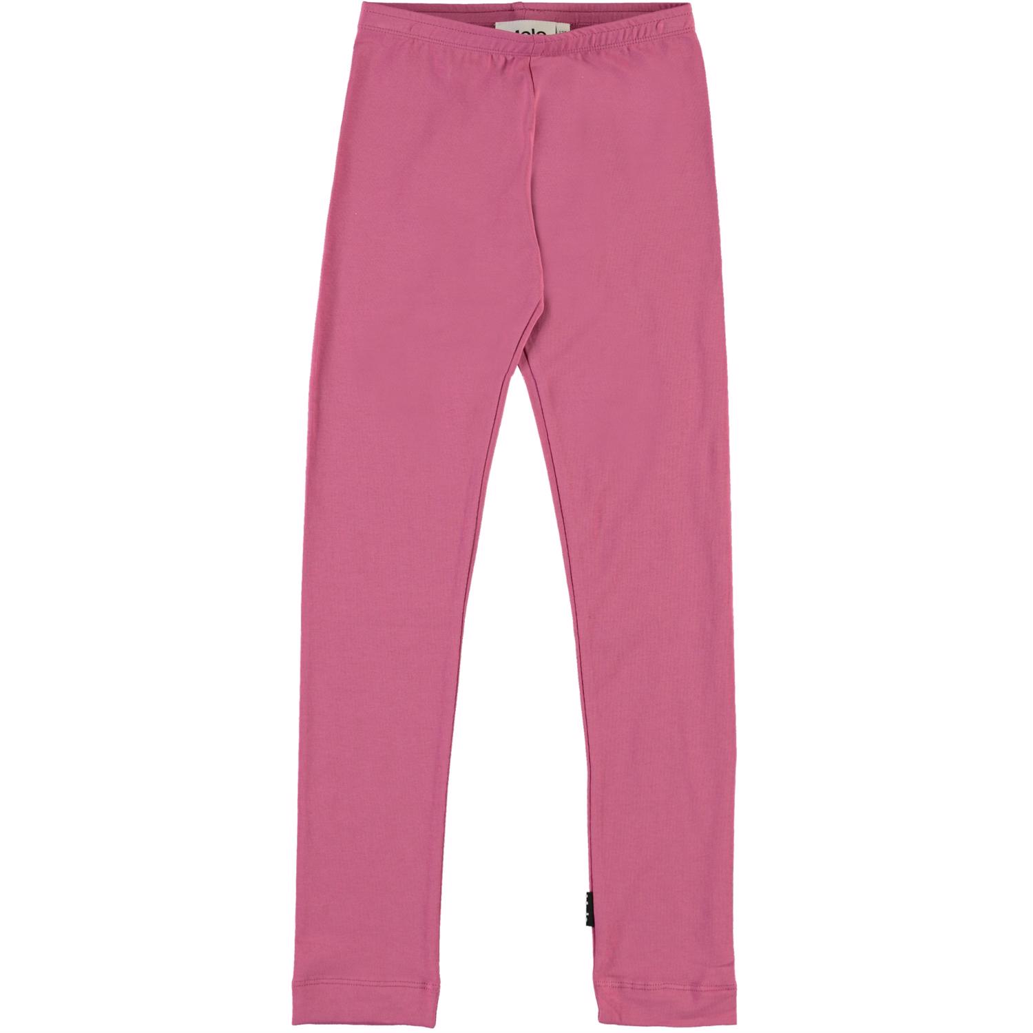 Molo's klassiske, lange leggings i fuchsia. Leggingsene er lavet i stretchy bomuldsmix og den elastiske talje sikrer et godt fit. Certificeret af Ecocert Greenlife, certifikationsnr. 197496.