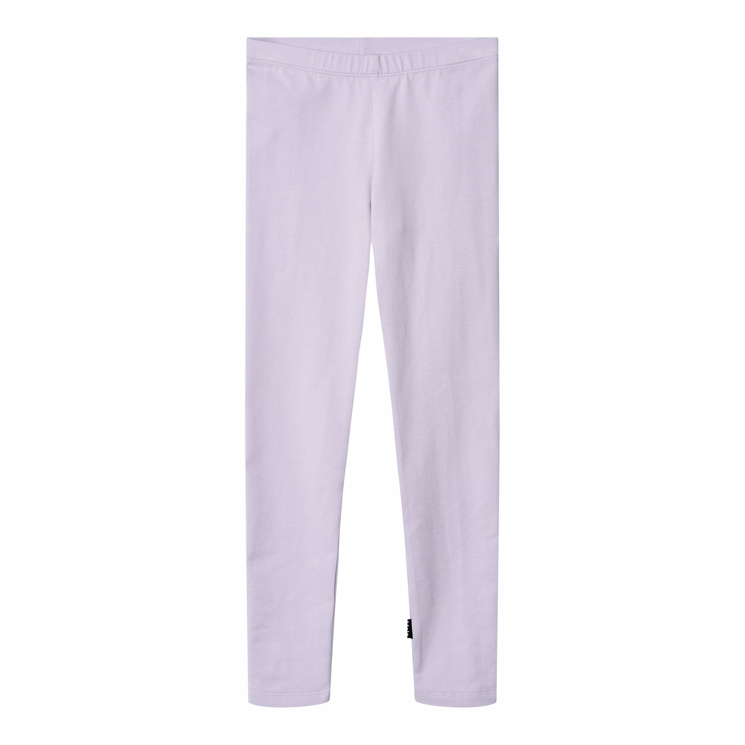Lyselilla leggings i økologisk bomuld med en tætsiddende pasform samt elastik i taljen for maksimal komfort og nem påklædning.