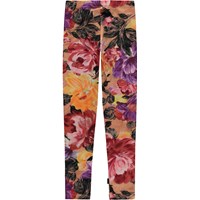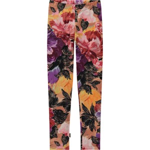 Rosa og lilla leggings i allover blomsterprint. Printet er dannet af smukke, håndmalede blomster og hvis du kigger efter, kan du se penselstrøgne. Disse leggings er fremstillet i 100% bomulds jersey, har elastik i taljen, samt et slim fit.