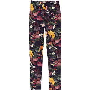 Molo's klassiske, lange leggings i mørkelilla med print af bær, blomster og blade. De er lavet i stretchy bomuldsmix og den elastiske talje sikrer et godt fit.