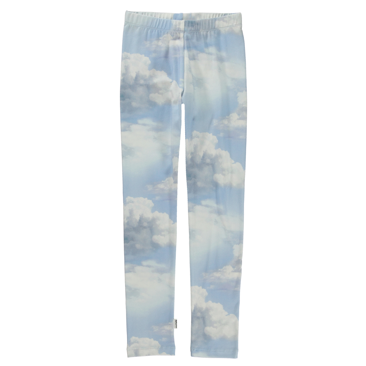 En af Molo's absolut mest populære styles! Niki er et par lyseblå leggings med elastik i taljen, fremstillet i økologisk bomulds jersey. Niki er i printet, Clouds, med hvide, bløde skyer på en blå himmel.