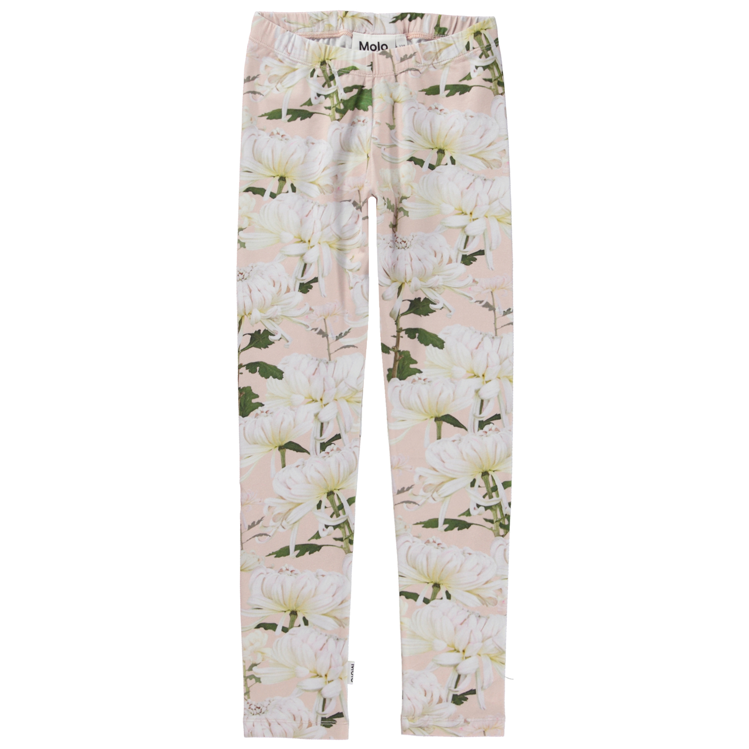 En af Molo's absolut mest populære styles! Niki er et par lyserøde leggings med elastik i taljen, fremstillet i økologisk bomulds jersey. Niki er i allover printet, Flowery, med med store og flotte hvide blomster.