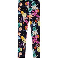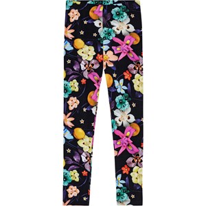 Sorte leggings i økologisk bomuld med tætsiddende pasform og elastik i taljen for komfort og let påklædning. De har et flot print af farverige blomster i friske farver, som træder tydeligt frem på den sorte baggrund. Leggings er perfekte til at style under kjoler, nederdele og store sweatre for et behageligt og trendy look.