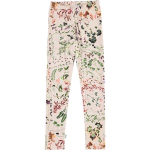 Molo's klassiske, lange leggings i lyserød med blomster print. De er lavet i stretchy bomuldsmix og den elastiske talje sikrer et godt fit.
