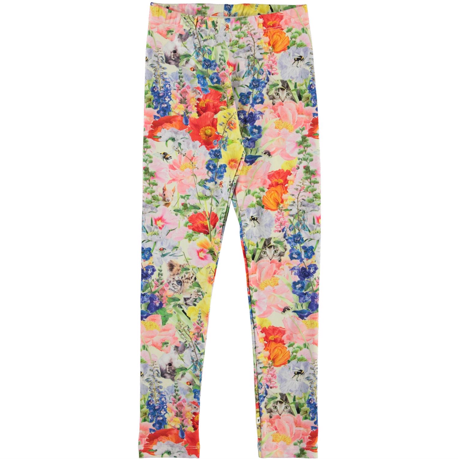 Molo's klassiske, lange leggings i lyserød med blomster print. De er lavet i stretchy bomuldsmix og den elastiske talje sikrer et godt fit.