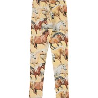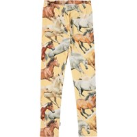 Molo's klassiske, lange leggings i gul med heste print. De er lavet i stretchy bomuldsmix og den elastiske talje sikrer et godt fit.
