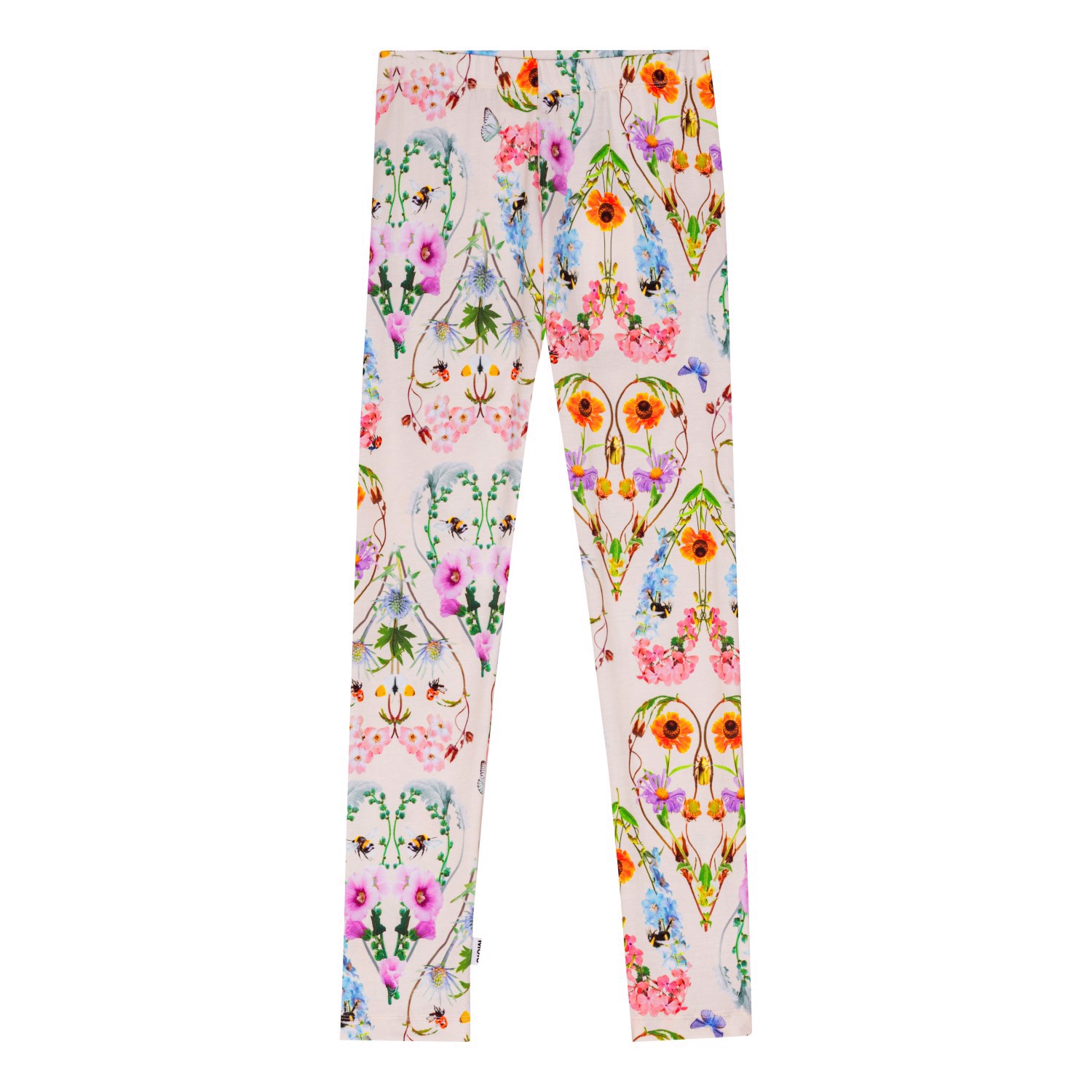 Råhvide gamacher i økologisk bomuld. Gamacherne er tætsiddende og har elastik i taljen der gør dem nemme at komme i og behagelige at have på. Gamacherne har et alloverprint af hjerter der er dannet af insekter og vilde blomster.