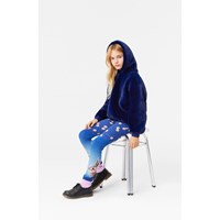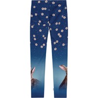 Blå økologiske bomuldsleggings med tætsiddende pasform og elastik i taljen for komfort. Printet viser kaniner i en smuk nattehimmel med glitrende stjerner og hvide blomster. Perfekte til at style under kjoler, nederdele og store sweatre for et behageligt og trendy look.
