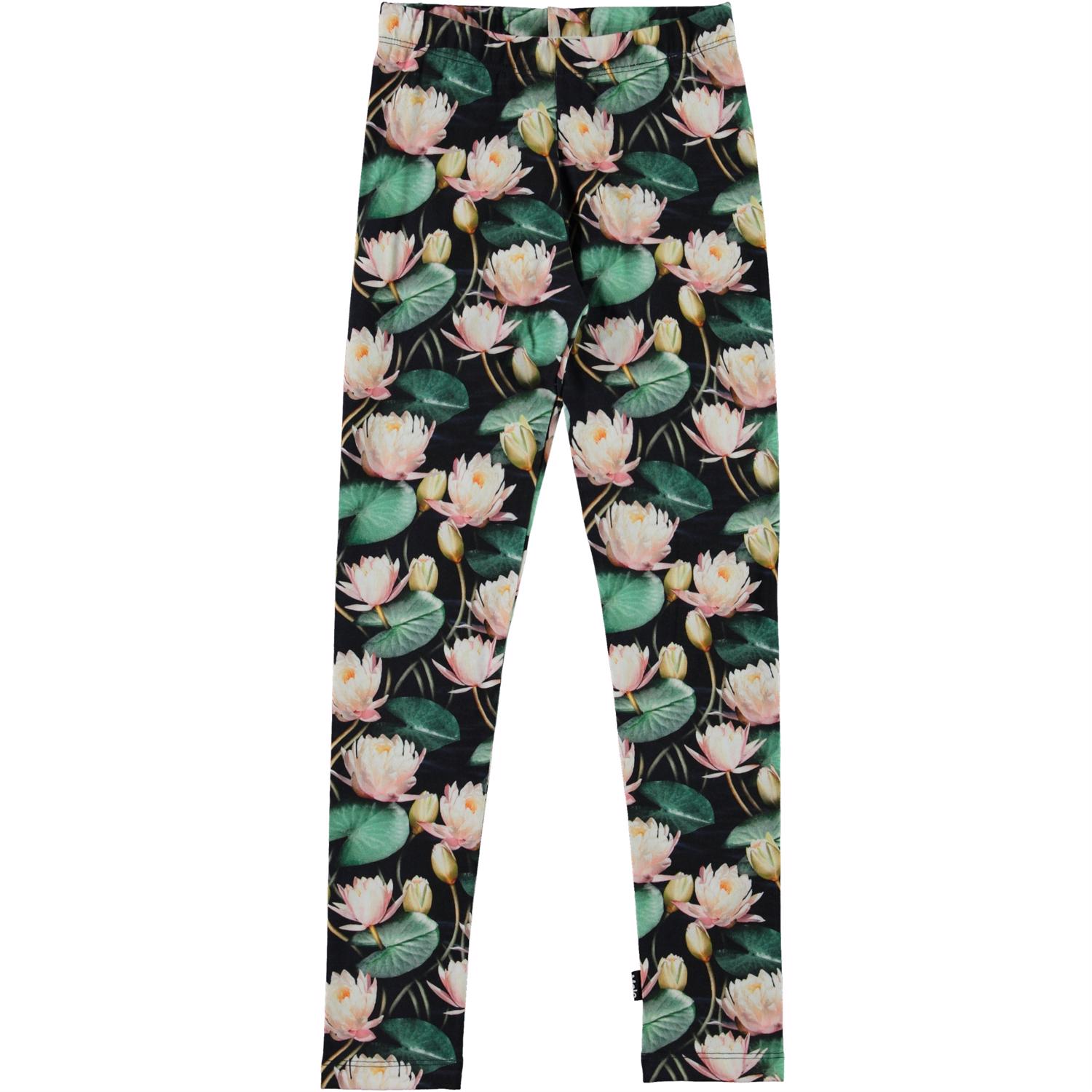 Molo's klassiske, lange leggings med print af lyserøde åkander. De er fremstillet i stretchy bomuldsmix og den elastiske talje sikrer et godt fit.