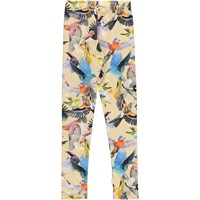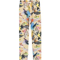 Molo's klassiske, lange leggings i lysegul med fugleprint i flotte farver. De er lavet i stretchy bomuldsmix og den elastiske talje sikrer et godt fit.