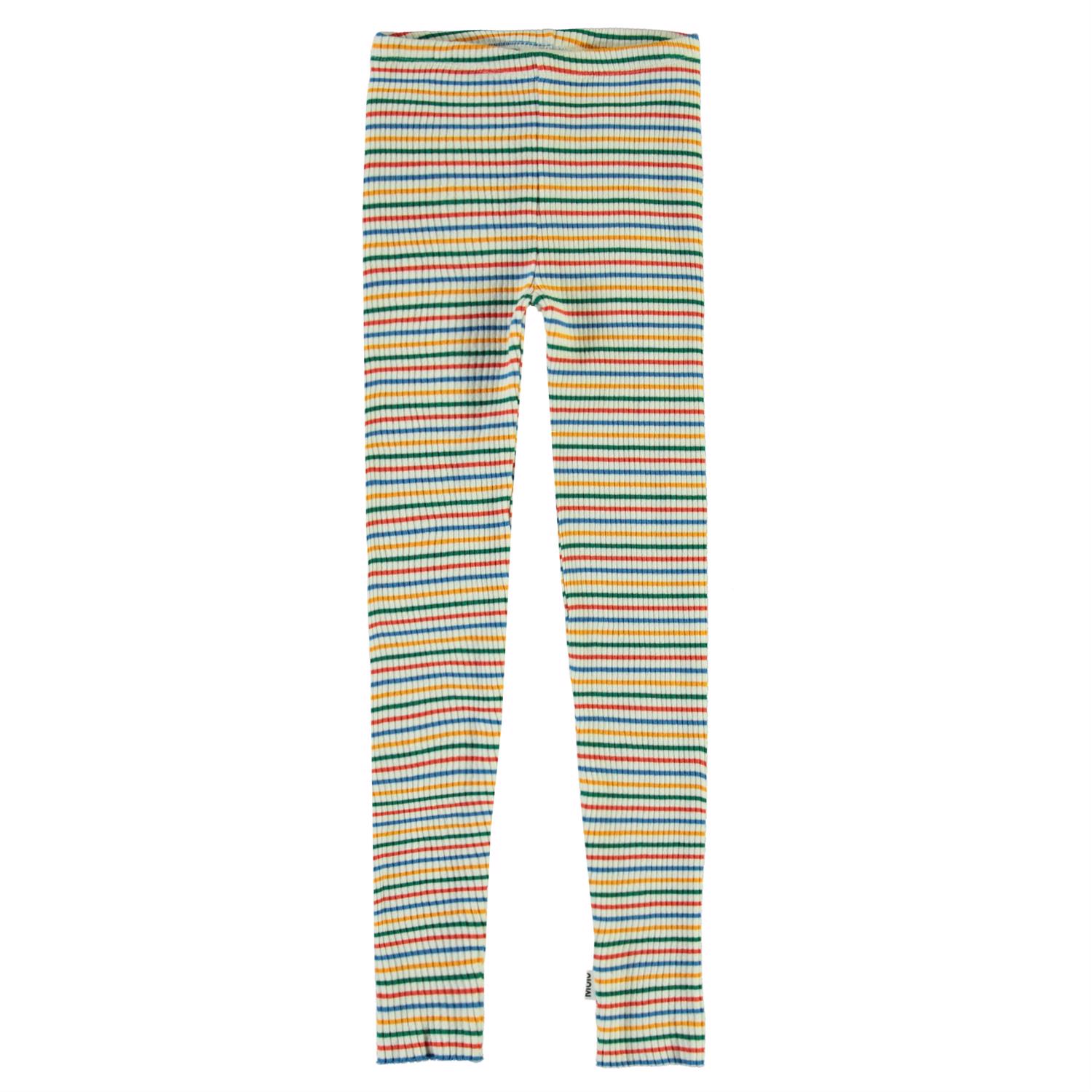 Lange multifarvede leggings med striber i rib. Certificeret af Ecocert Greenlife, certifikationsnr. 197496.