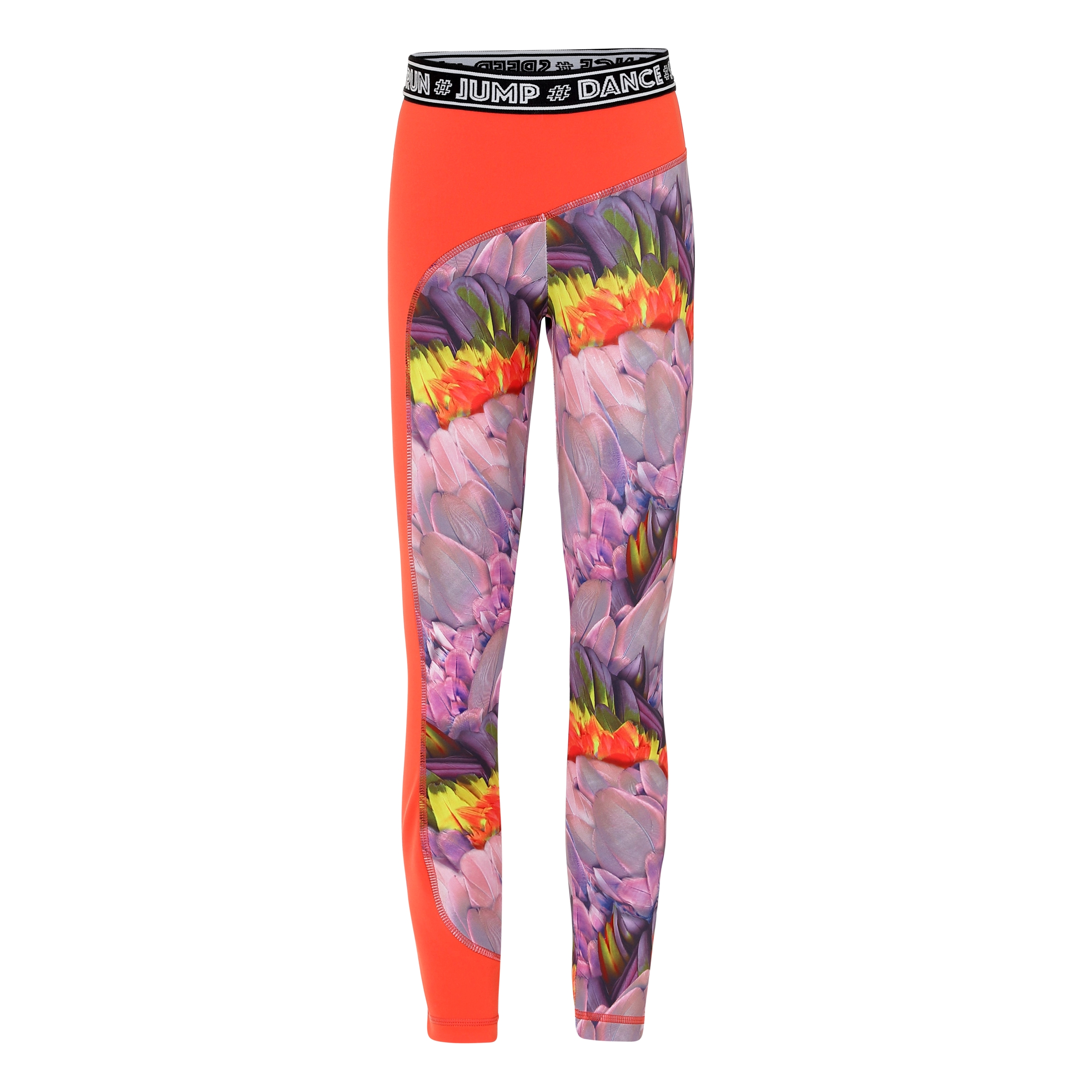 Olympia er et par blomstrede leggings med asymetrisk koralfarvet detalje ned langs det ene ben, samt en elastisk talje, som har printet tekst. Disse sports leggings sikrer den helt rette comfort og fleksibilitet og sørger for, at der ikke er nogen hindring for bevægeligheden. Olympia er en del af Molo's nye sportskollektion, som er med til at binde mode og sport tættere sammen. Kombiner Olympia med en af Molo's sports toppe for en komplet sporty look. Molo’s sportskollektion er fremstillet med en unik high-performance teknologi kaldet HeiQ Smart Temp, der understøtter kroppens naturlige nedkøling. • Kølefunktionen aktiveres, når du er varm og svedig • Kølefunktionen deaktiveres, når kroppen er nedkølet. • HeiQ Smart Temp sikrer optimal komfort og ydeevne • Testet uafhængigt som sikkert for huden •
