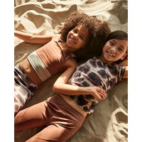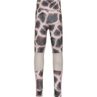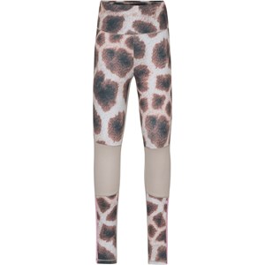Olympia er et par leggings med fint giraf print, samt beige panel ved knæene og lyserødt tekstbånd på siden af benene. Disse sportsleggings sikrer den helt rette komfort og fleksibilitet og sørger for, at der ikke er nogen hindring for bevægeligheden. Olympia er en del af Molo's sportskollektion, som er med til at binde mode og sport tættere sammen. Kombiner Olympia med en af Molo's toppe for enkomplet sporty look. Molo’s sportskollektion er fremstillet med en unik high-performance teknologi kaldet HeiQ Smart Temp, der understøtter kroppens naturlige nedkøling. Kølefunktionen aktiveres, når du er varm og svedig. Kølefunktionen deaktiveres, når kroppen er nedkølet. HeiQ Smart Temp sikrer optimal komfort og ydeevne. Testet uafhængigt som sikkert for huden. .