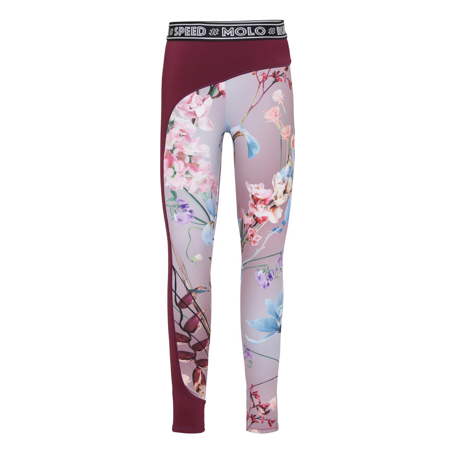 Olympia er et par rosa leggings med blomster print i farverne med asymetrisk boardeuax detalje ned langs det ene ben, samt en elastisk talje, som har printet tekst. Disse sports leggings sikrer den helt rette comfort og fleksibilitet og sørger for, at der ikke er nogen hindring for bevægeligheden. Olympia er en del af Molo's sportskollektion, som er med til at binde mode og sport tættere sammen. Kombiner Olympia med en af Molo's toppe for en komplet sporty look. Molo’s sportskollektion er fremstillet med en unik high-performance teknologi kaldet HeiQ Smart Temp, der understøtter kroppens naturlige nedkøling. Kølefunktionen aktiveres, når du er varm og svedig. Kølefunktionen deaktiveres, når kroppen er nedkølet. HeiQ Smart Temp sikrer optimal komfort og ydeevne. Testet uafhængigt som sikkert for huden. .